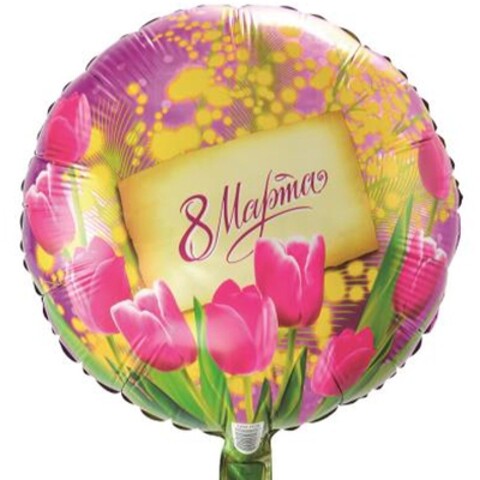 К 18"/46 см, Круг, 8 Марта, Тюльпаны и мимозы, 1 шт.