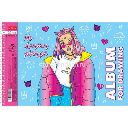 Альбом для рисования А4 32л "Модные девочки" на спирали перфорация на отрыв, МИКС, 1 шт