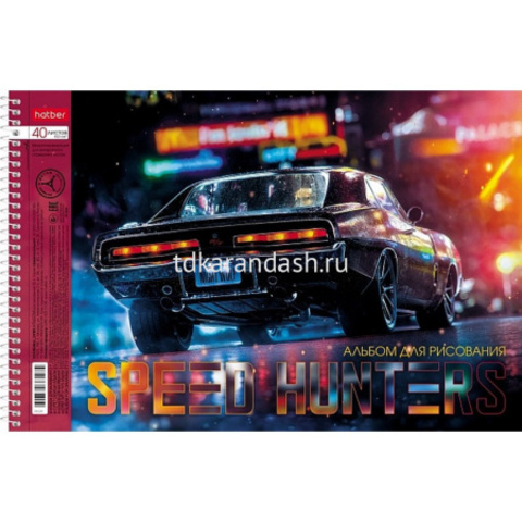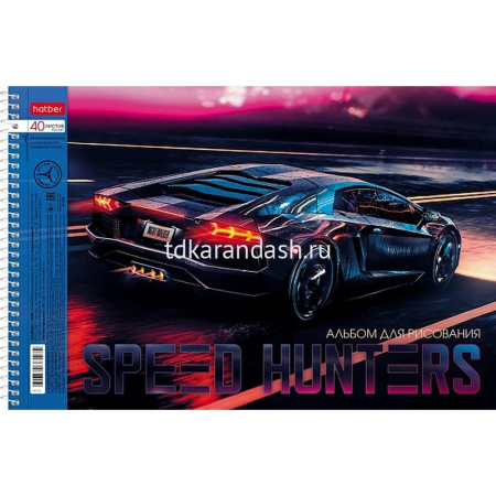Альбом для рисования А4 40л "Охотники за скоростью" на спирали, перфорация на отрыв, МИКС, 1 шт