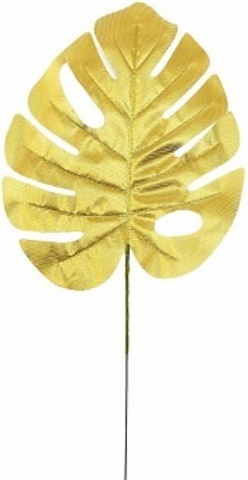 Растение искусственное, Лист Монстеры, Золото, Металлик, 19*39 см, 5 шт.