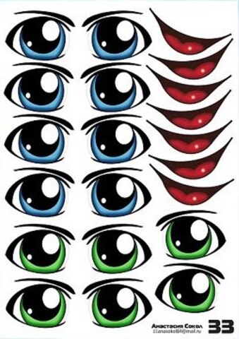 Наклейки "Глаза. Рты №33", 7 компл. на листе
