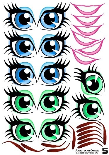 Наклейки "Глаза. Рты №5", 6 компл. на листе