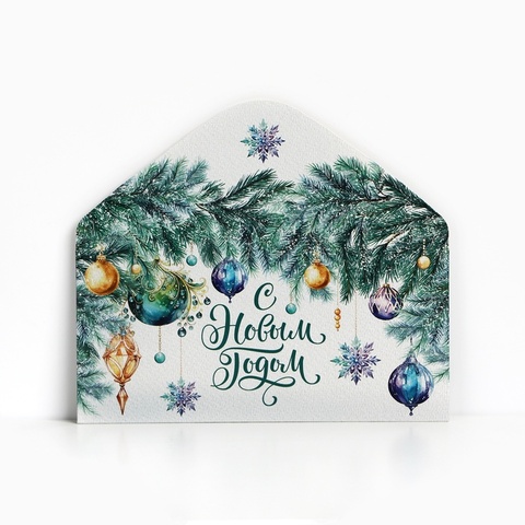 Открытка-конверт, С Новым годом, Ветки и шары, 16,5*8 см, 5 шт.