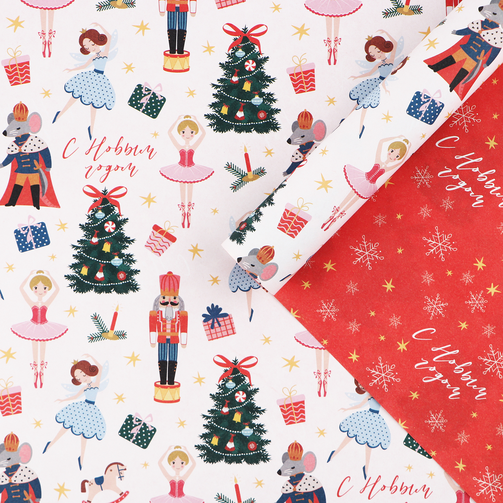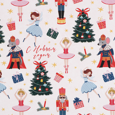 Упаковочная бумага глянцевая, «Новогодний щелкунчик», двухсторонняя, 0,7*1 м, 5 листов
