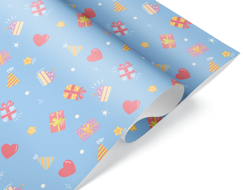 Упаковочная бумага, Шары и подарки, Голубой, 0,7*1 м, 5 листов