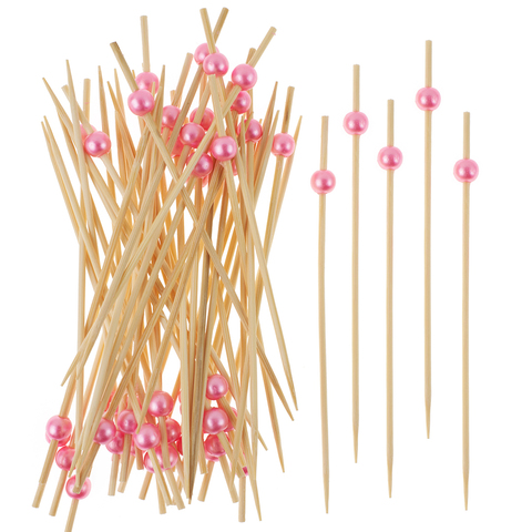 Пики топперы с бусинами, Розовый, 12 см, 50 шт.