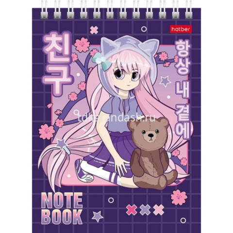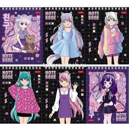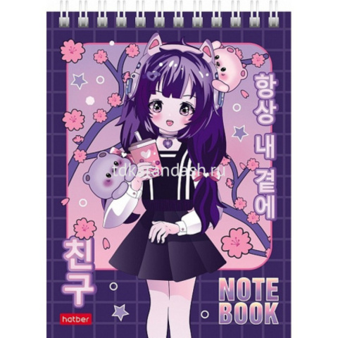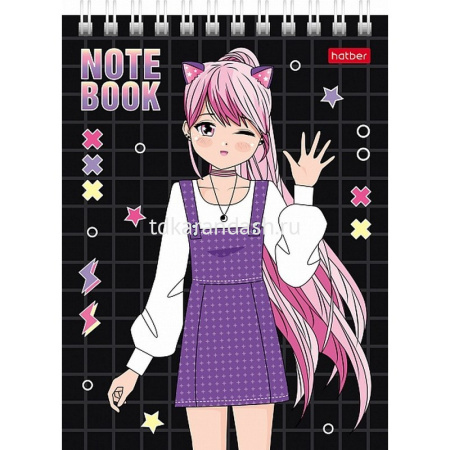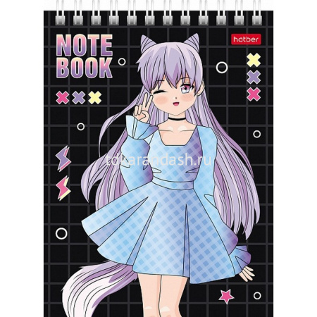 Блокнот А6 40л "Неко. Тян аниме" клетка, на спирали, МИКС, 1 шт