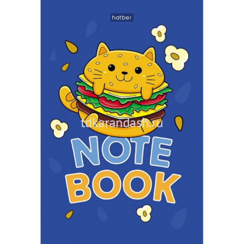Блокнот А6 40л "Premium.Cats-Fast food" клетка гляневая ламинация, склейка, МИКС, 1 шт