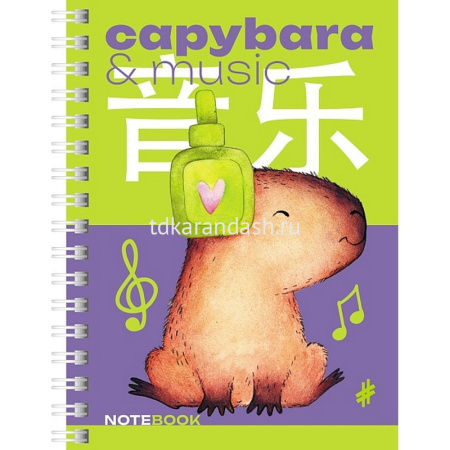 Блокнот А6 80л "Капибара_day" клетка, на спирали, МИКС, 1 шт