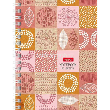Записная книжка А6 80л "Скандинавские узоры" клетка, на спирали, твердая обложка, МИКС, 1 шт