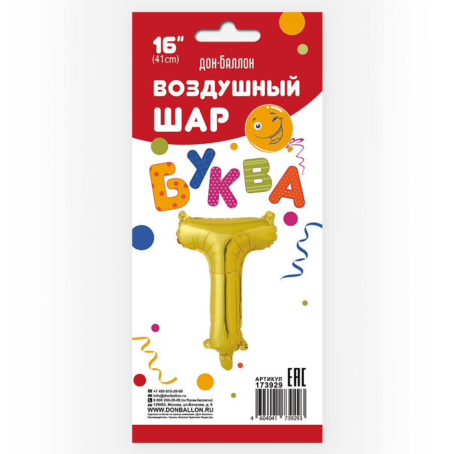 К 16''/41 см Мини-буква Золото "Т", с клапаном, 1 шт. в упаковке