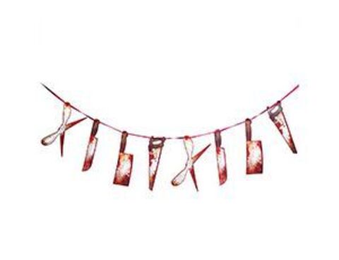 Декоративное украшение интерьера - гирлянда. Состоит из ленты длиной 2 м, на которой размещены картонные баннеры в форме пилы, топора, ножа и ножниц (по 2 шт. каждого баннера). Баннеры, размером 30*15 см (В*Ш), выполнены из высококачественного картона с двухсторонней печатью.