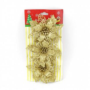 Пуансеттии, "Глиттер мини", Золото, 11 см, 3 шт, 1 уп.