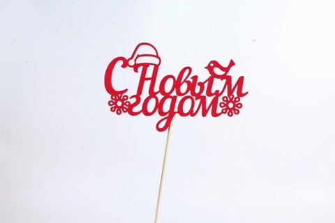 Топпер, "С Новым Годом, Птичка", Красный, 14*7 см.