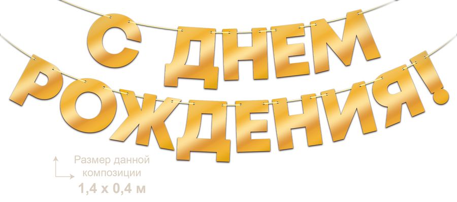 Гирлянда, "С Днем Рождения!", золото, 1 шт.