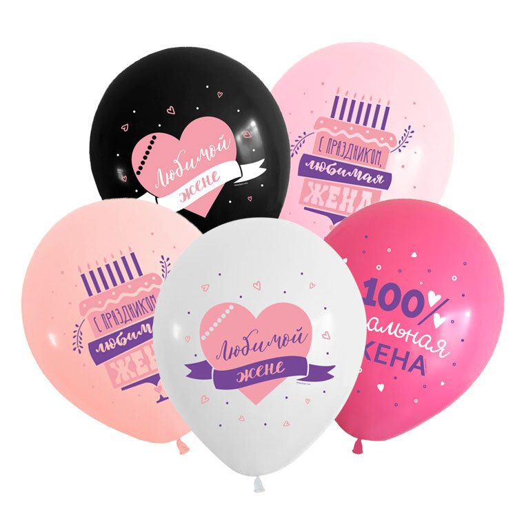 К 12"/30 см, Любимой жене, Ассорти Пастель, 25 шт.