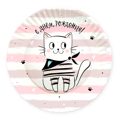 Тарелки бумажные "С Днем рождения" Котики, 18 см, 6 шт.