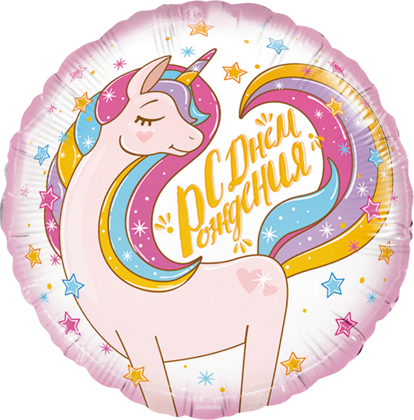 К 18"/46 см, Круг, С Днем Рождения (единорог), 1 шт. (В упаковка)