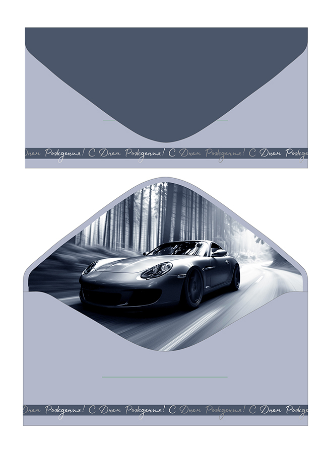 Открытка-конверт, С Днем рождения, Машина, Серый, Софт тач, 8,3*16,8 см, 5 шт.