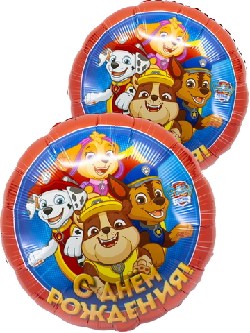 А 18"/46 см, Круг, С днем рождения, Щенячий Патруль, 1 шт.
