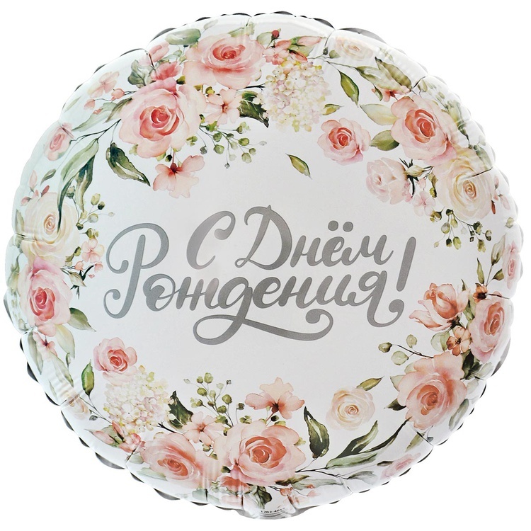 К 18''/46 см, Круг, С Днем Рождения, Цветы акварель, Белый, 1 шт. (В упаковке)