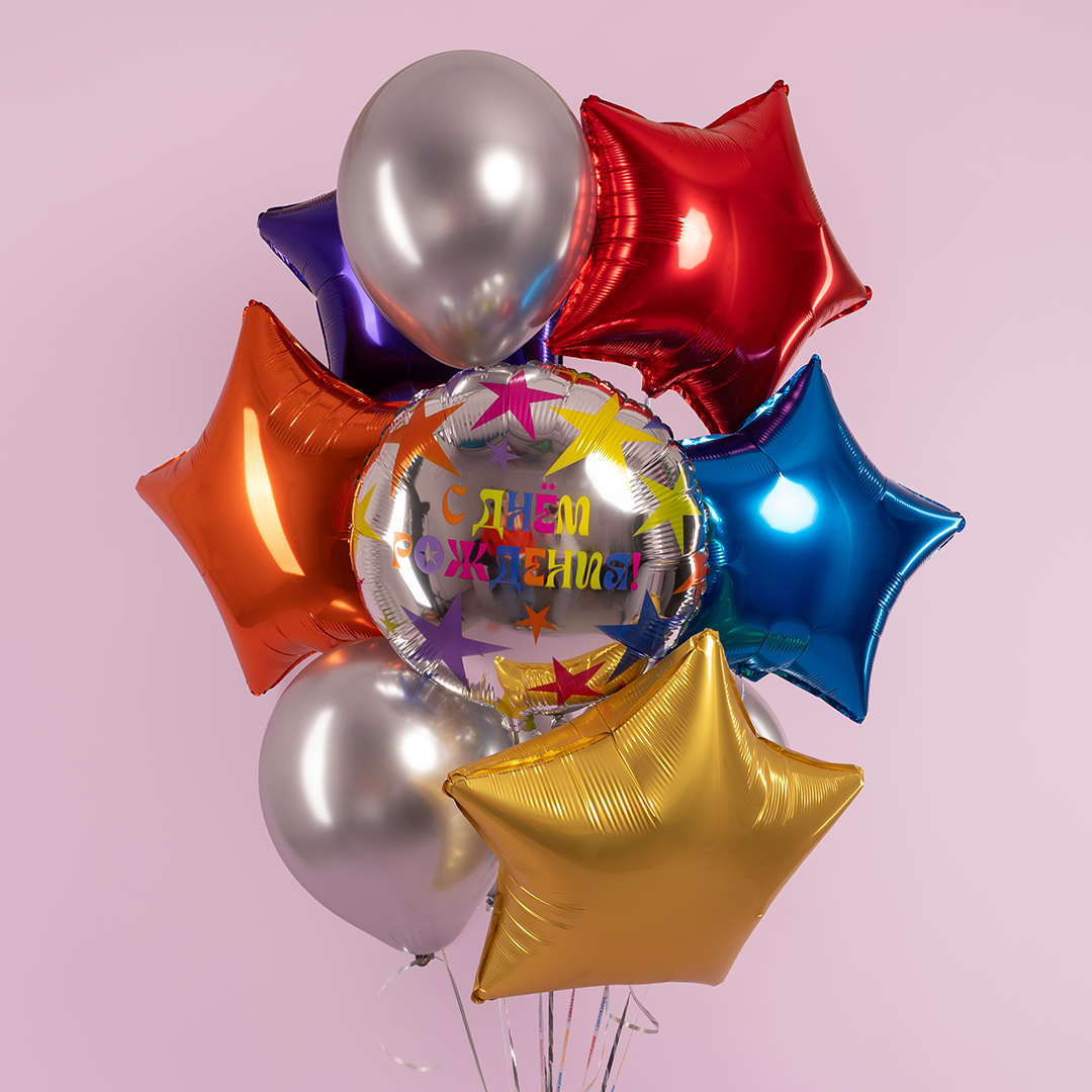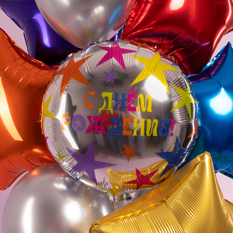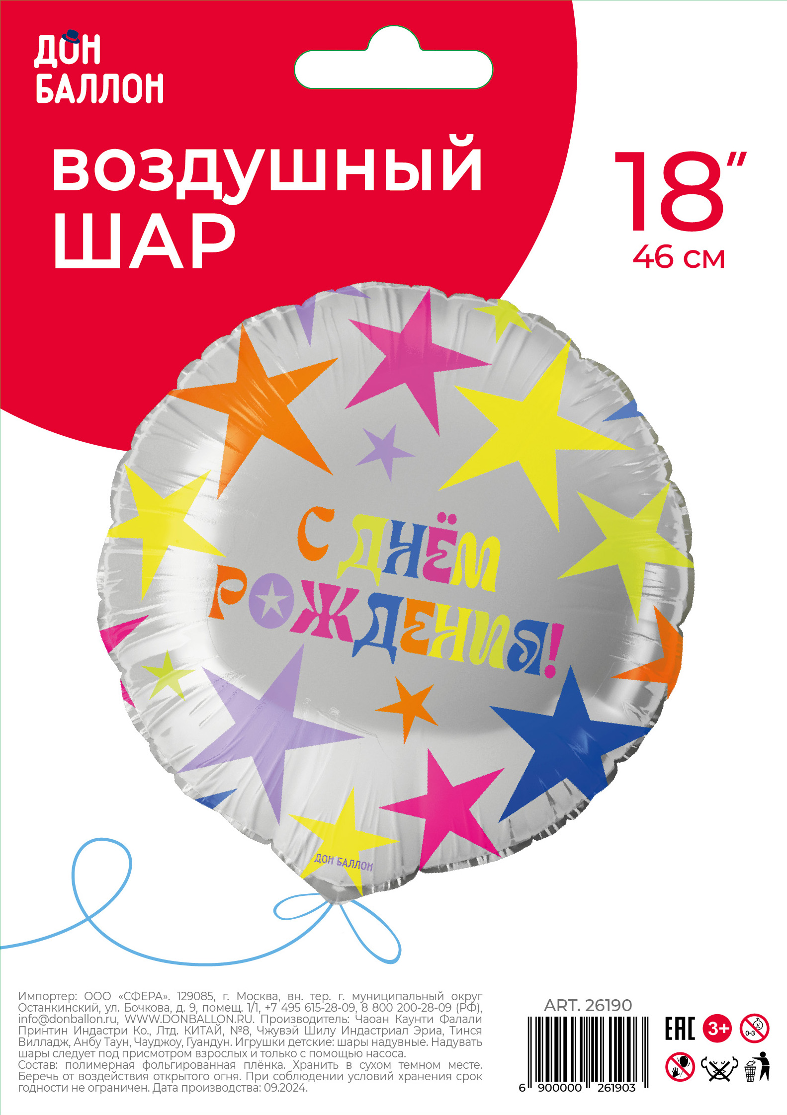 К 18"/46 см, Круг, С Днем Рождения! яркие звезды, 1 шт. (В упаковке)
