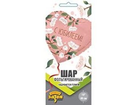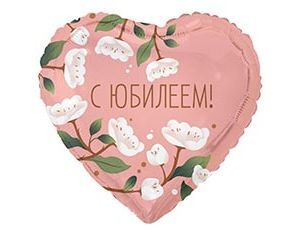 К 18''/46 см, Сердце, С юбилеем, цветы белые, 1 шт. (В упаковке)