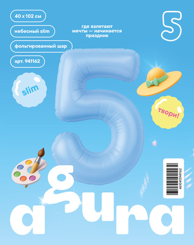 Аг 40''/102 см, Цифра Slim Небесный "5" (в упаковке)