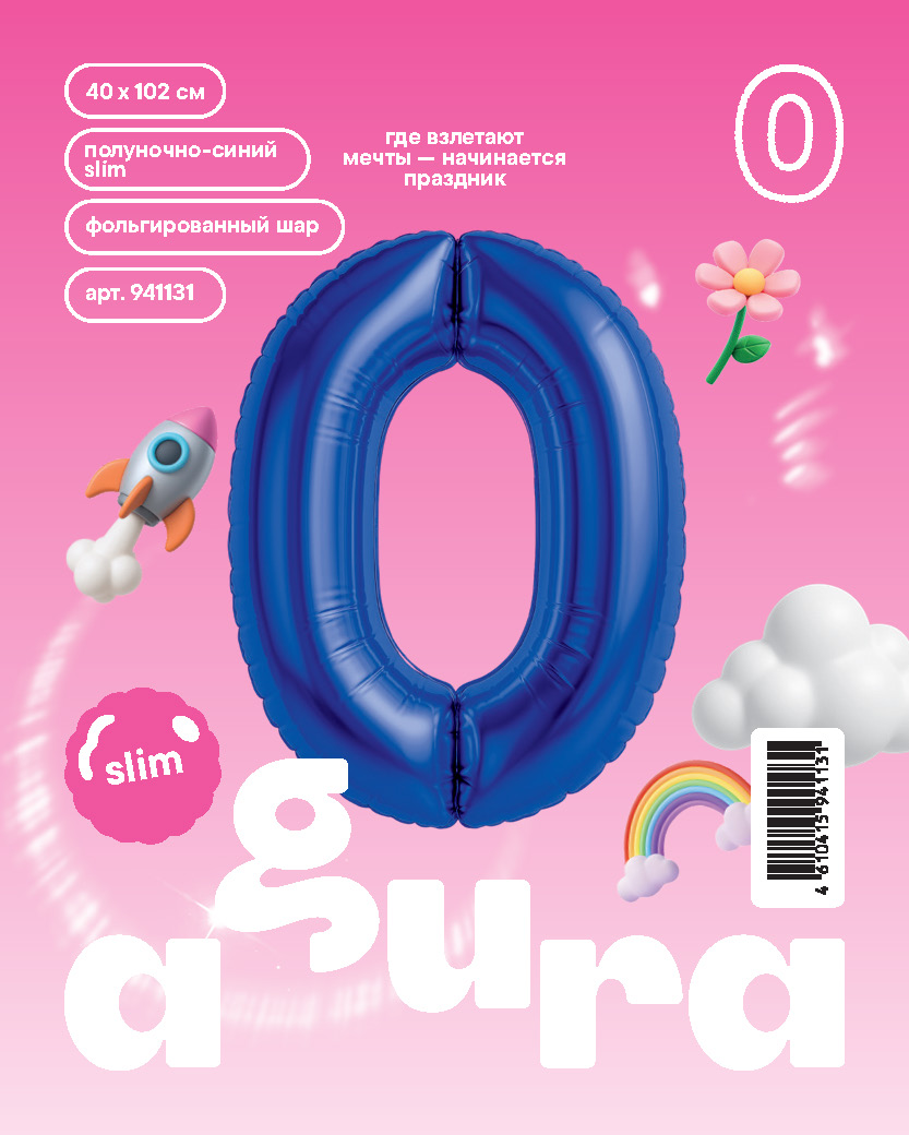Аг 40''/102 см, Цифра Slim Полуночно-синий "0" (в упаковке)