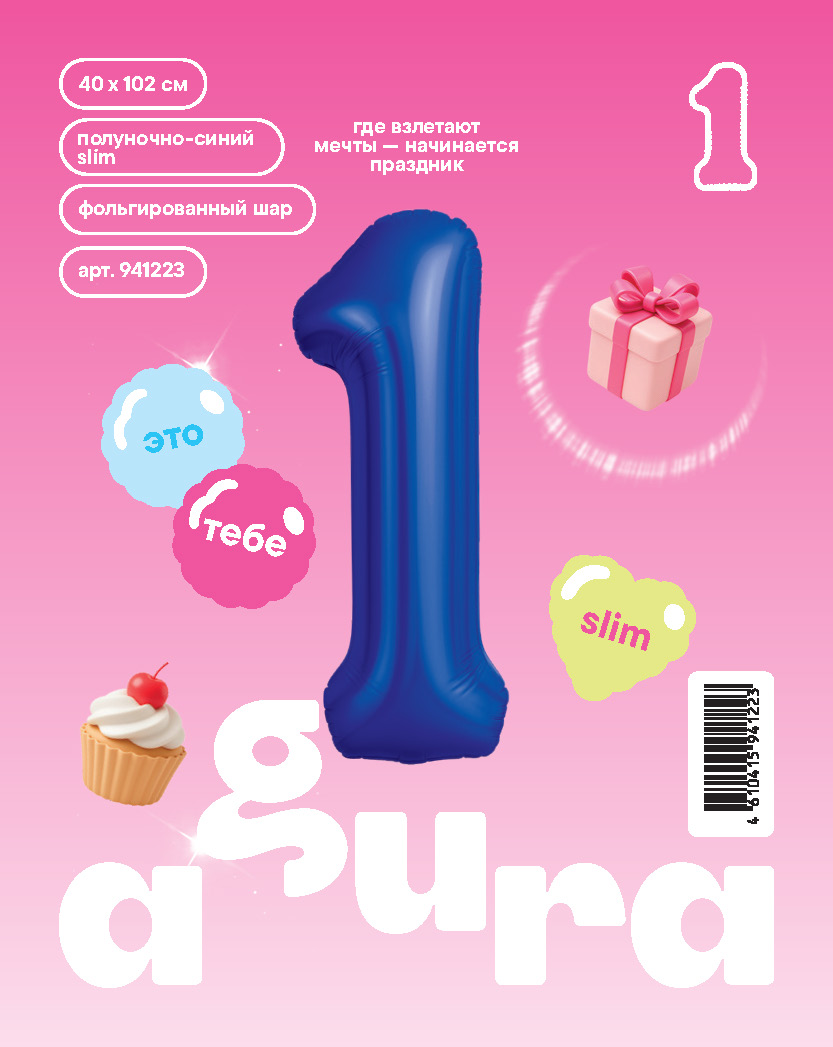Аг 40''/102 см, Цифра Slim Полуночно-синий "1" (в упаковке)
