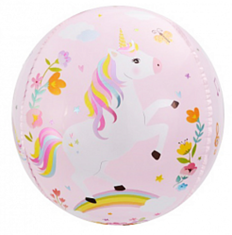 К Сфера 3D, 24''/61 см, С Днем Рождения, волшебные единороги, Розовый, 1 шт. (В упаковке)