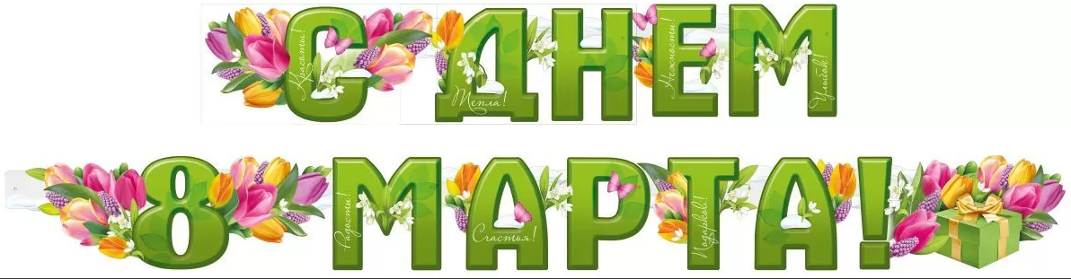 Гирлянда-буквы, "С Днем 8 Марта", Зеленая, 1 шт.