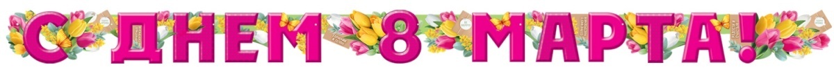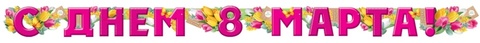 Гирлянда-буквы, С Днем 8 Марта, Тюльпаны, Фуксия, 2 м