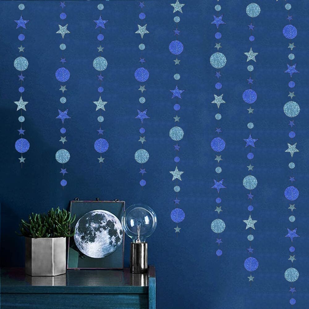 Гирлянда на нитях, "Звезды/Кружочки", Блеск, Голубой/Синий, 4 м.