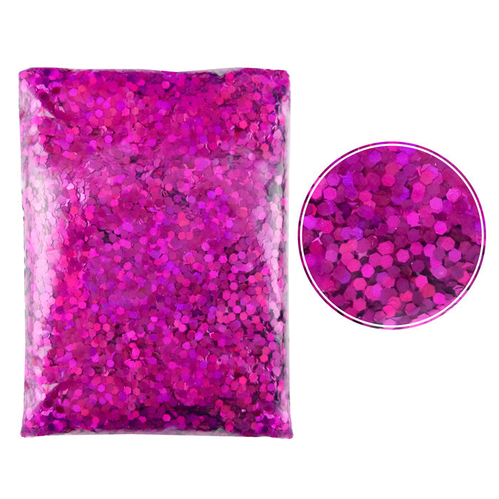 Форма глиттера "Блестки" лазерный Фуксия – шестигранник.