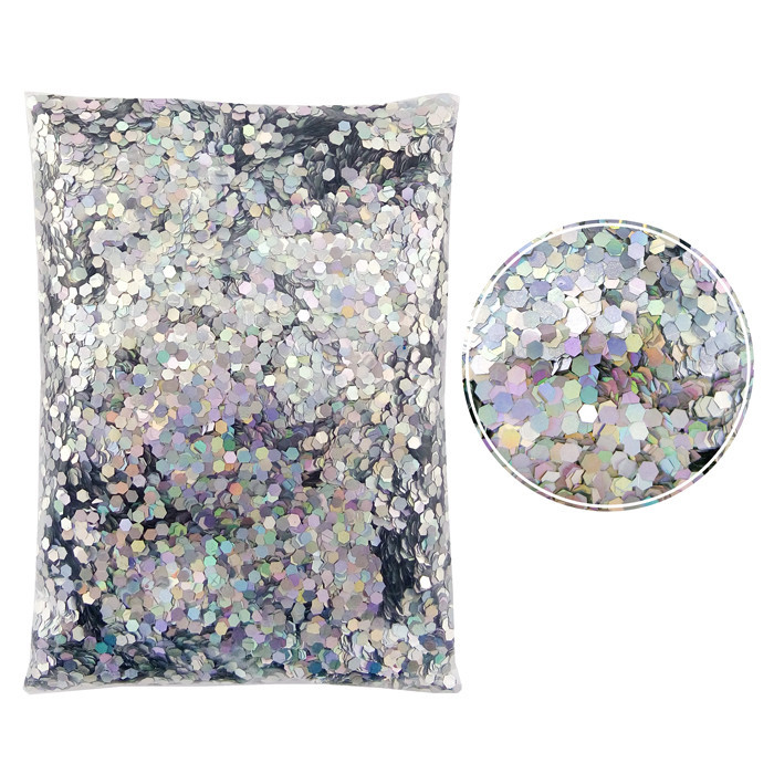 Форма глиттера "Блестки" лазерный Серебряный – шестигранник.