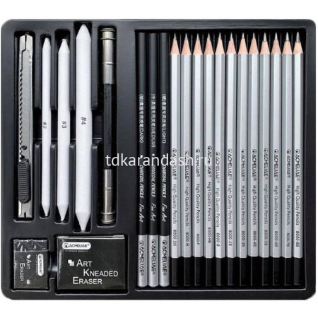 Набор для графики 22 предмета (карандаши, растушевки, держатель, канц.нож, ластики) в металле