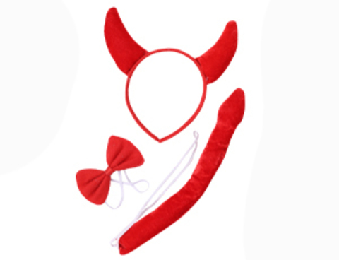 Комплект карнавальный, Черт, Красный, 3 предмета (ободок, бабочка, хвост)