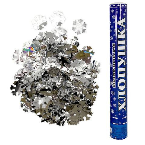 Пневмохлопушка, "Снежинки", Серебро, Металлизированные, 40 см, 1 шт.