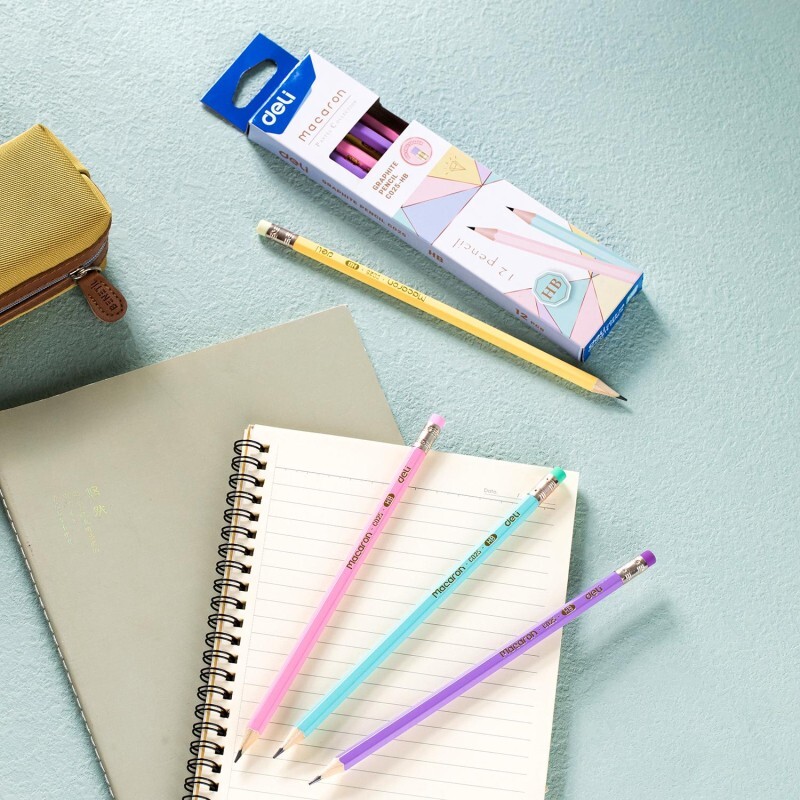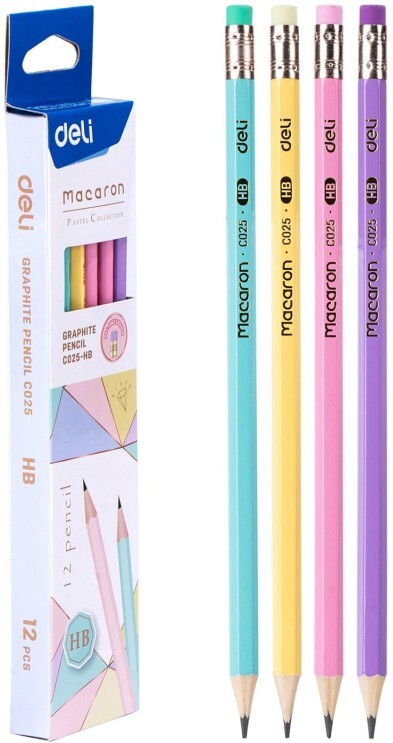 Карандаш чернографитный "Macaron" HB, с ластиком, шестигранный, корпус ассорти