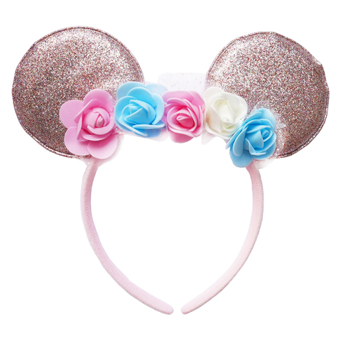 Ободок, Мышка, с цветами, Розовое золото, 1 шт.