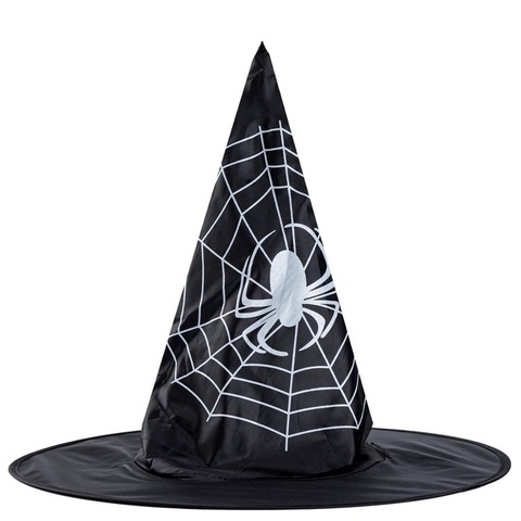 Шляпа ведьмы, Паук на паутине, Черный, 38 см, 1 шт.