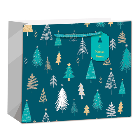 Пакет подарочный ХL горизонтальный, С Новым Годом, Елочки, Синий, 50*40*25 см (Д*В*Ш), 1 шт.