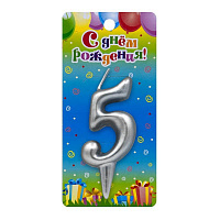 Свеча-цифра тортовая Серебро "5", 7,5 см, 1 шт.