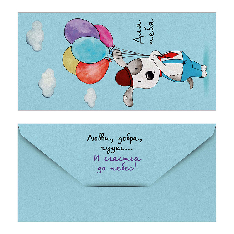 Открытка-конверт, "Собачка с шарами", 8*16 см, 5 шт.
