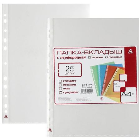 Набор перфофайлов "Суперлюкс" А4 100мкм глянцевый 25шт/уп