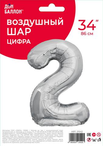 К 34''/86 см, Цифра ЭКО, Серебро, "2"