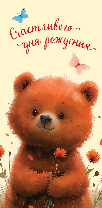 Открытка-конверт Счастливого Дня Рождения, 8*17 см, 5 шт.