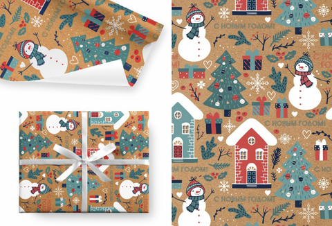 Бумага подарочная, С новым годом! Снеговик, 0,7*1 м, 5 листов