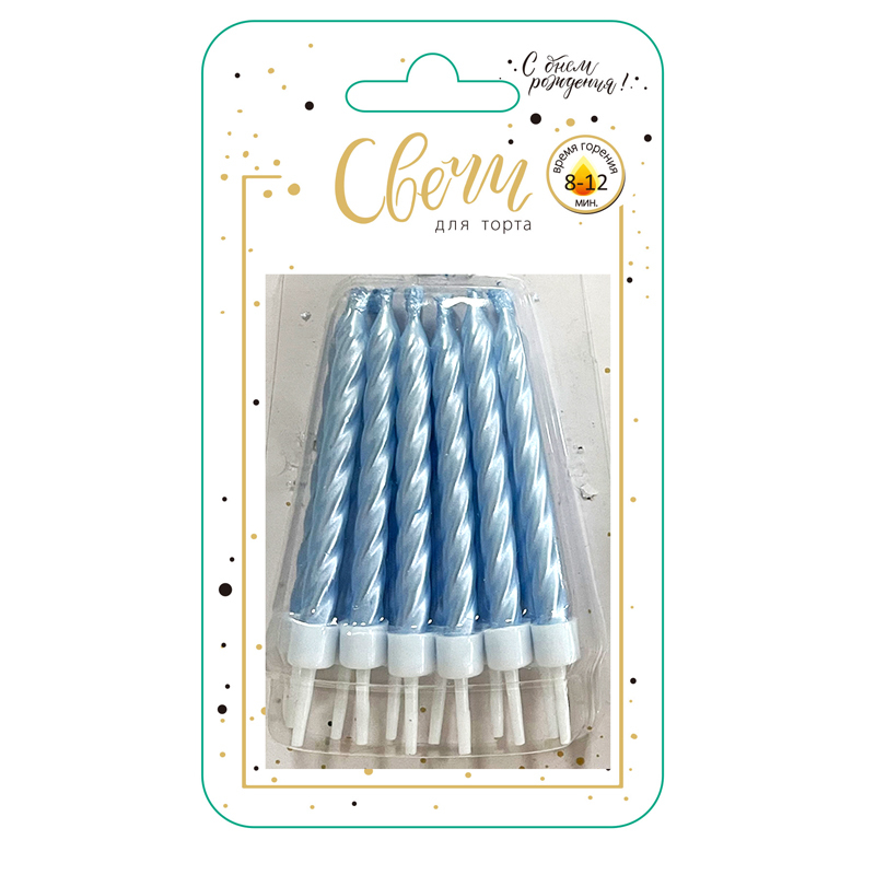 Свечи "Перламутр" Нежно-голубые, 6 см, 12 шт.